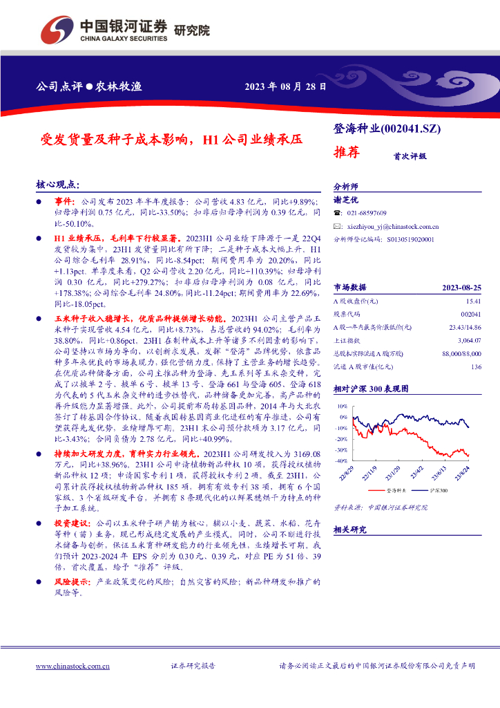 中国银河:登海种业(002041)-受发货量及种子成本影响,H1公司业绩承压.pdf