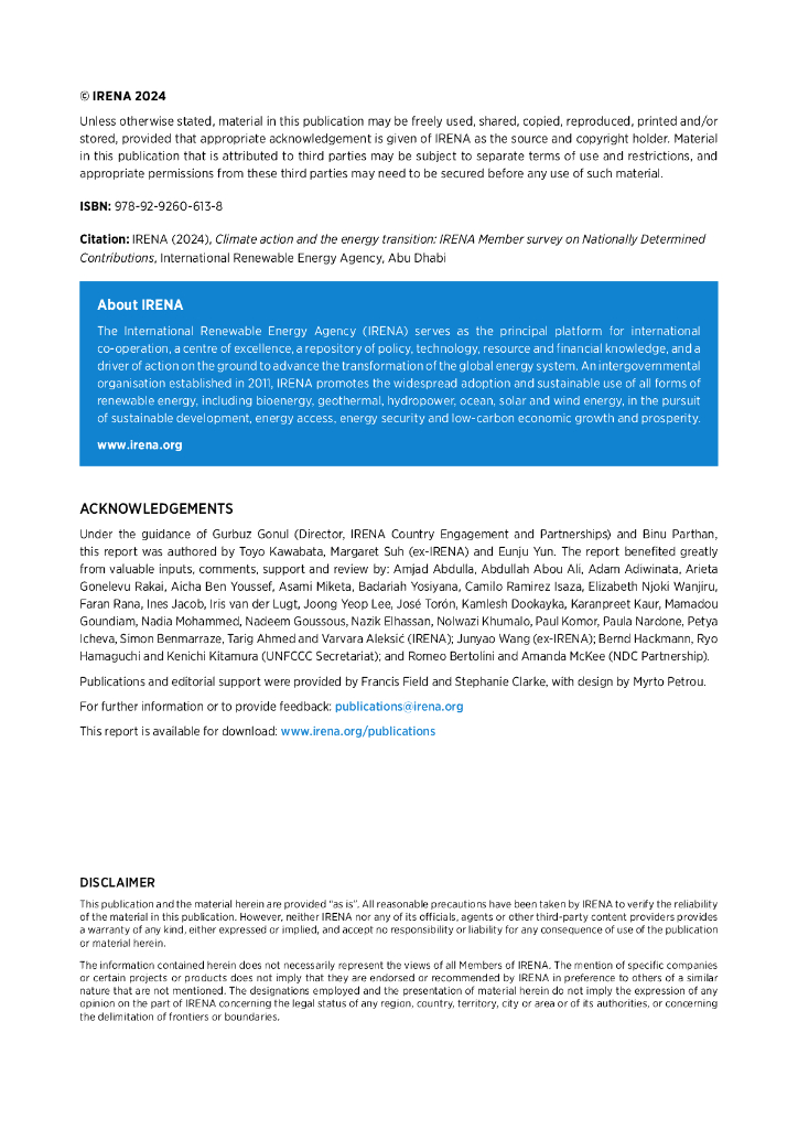 国际可再生能源署IRENA:2024气候行动与能源转型:国际可再生能源机构成员关于国家自主贡献的调查报告(英文版).pdf
