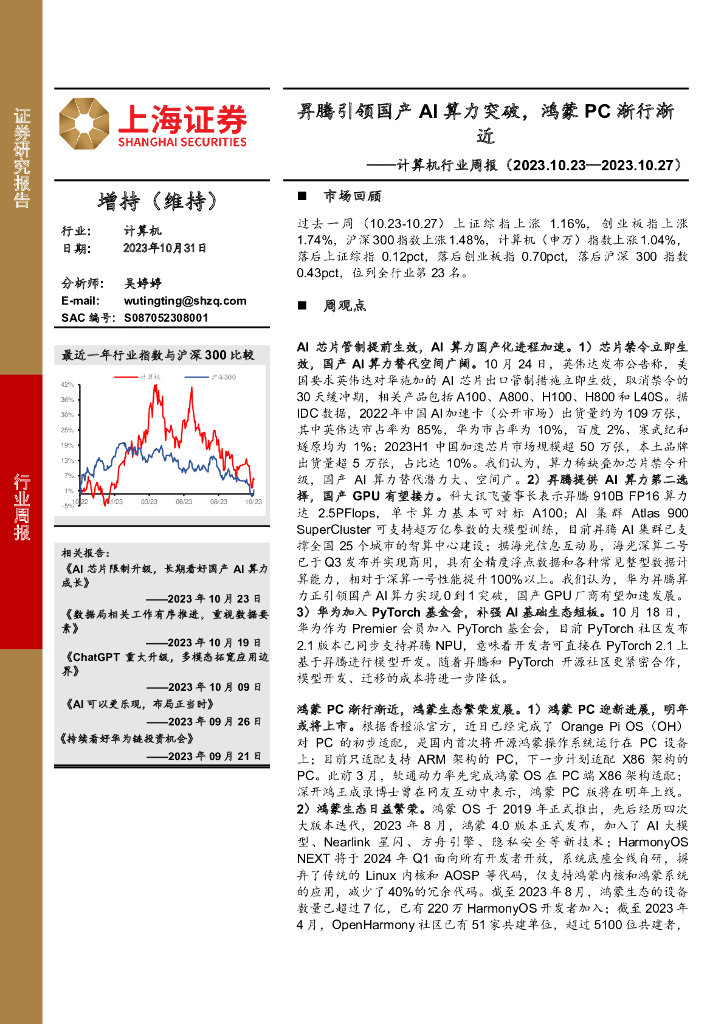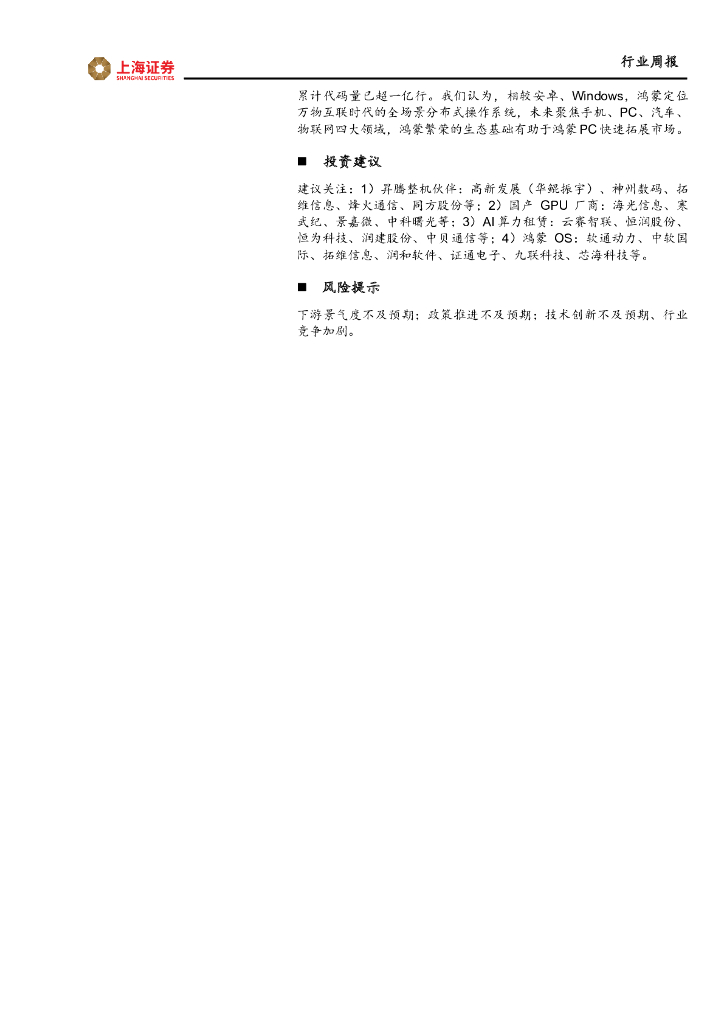 上海证券:计算机行业周报:昇腾引领国产AI算力突破,鸿蒙PC渐行渐近.pdf