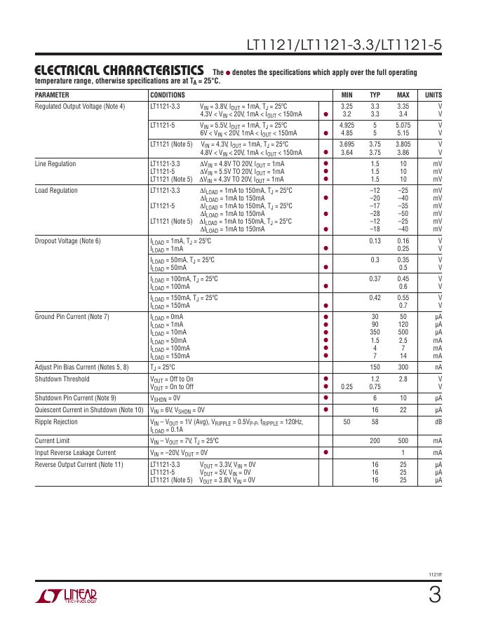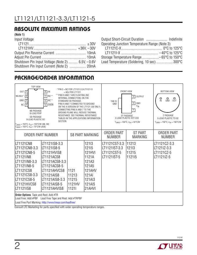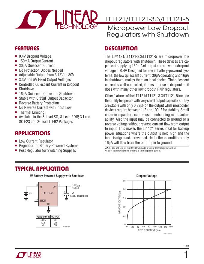 LINEAR TECHNOLOGY LT1121/LT1121-3.3/LT1121-5 数据手册.pdf