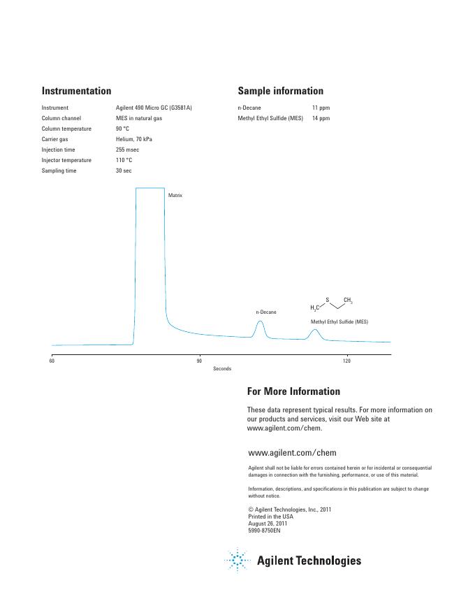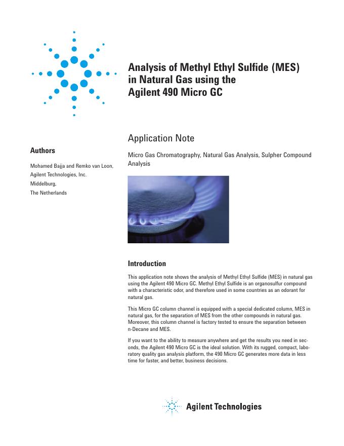 Agilent Analysis of Methyl Ethyl Sulfide (MES) in Natural Gas using the Agilent 490 Micro GC 数据手册.pdf