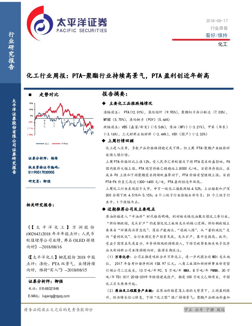 太平洋证券:化工行业周报:PTA-聚酯行业持续高景气,PTA盈利创近年新高.pdf