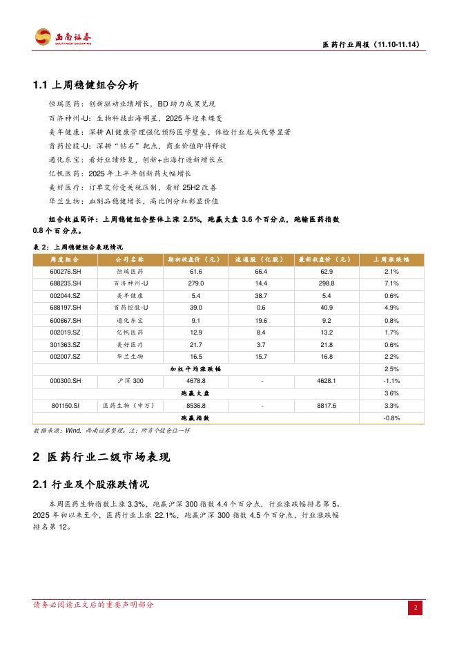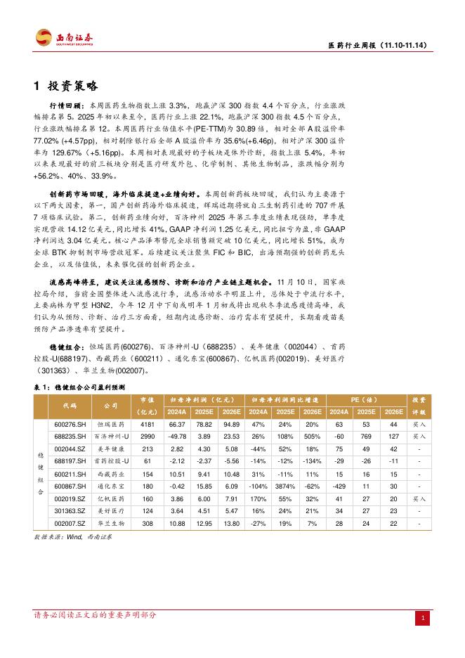 西南证券:医药行业周报:创新药市场回暖,海外临床提速+业绩向好.pdf