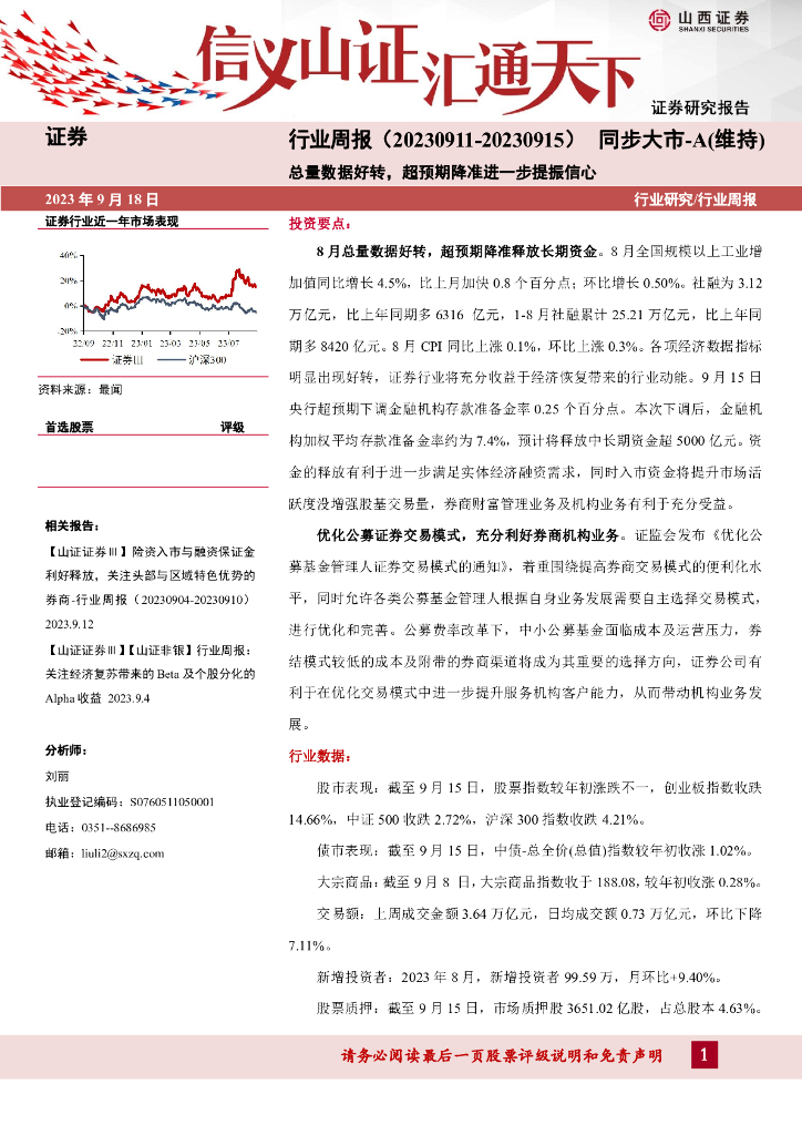 山西证券:证券行业周报:总量数据好转,超预期降准进一步提振信心.pdf
