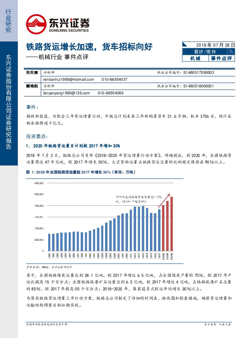 东兴证券:机械行业事件点评铁路货运增长加速,货车招标向好.pdf