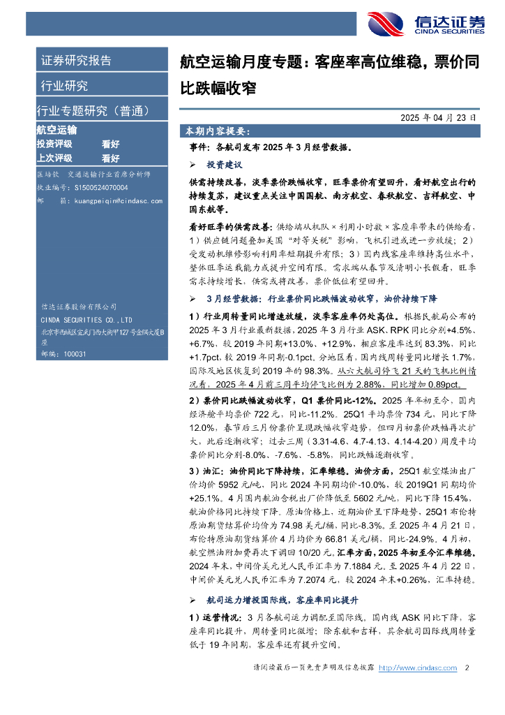 信达证券:航空运输月度专题:客座率高位维稳,票价同比跌幅收窄.pdf