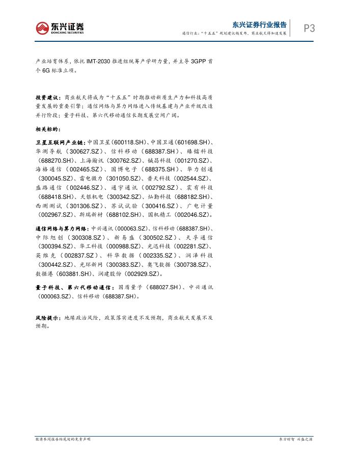东兴证券:通信行业:“十五五”规划建议稿发布,商业航天将加速发展.pdf