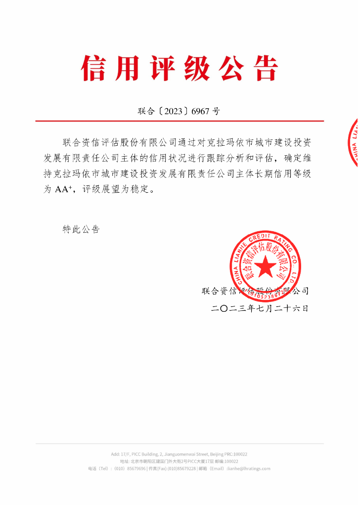 联合资信:克拉玛依市城市建设投资发展有限责任公司2023年主体跟踪评级报告.pdf