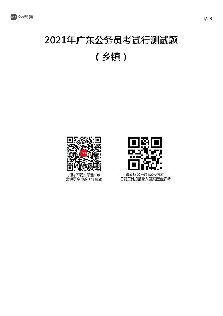 2021年广东公务员考试行测试题(乡镇).pdf