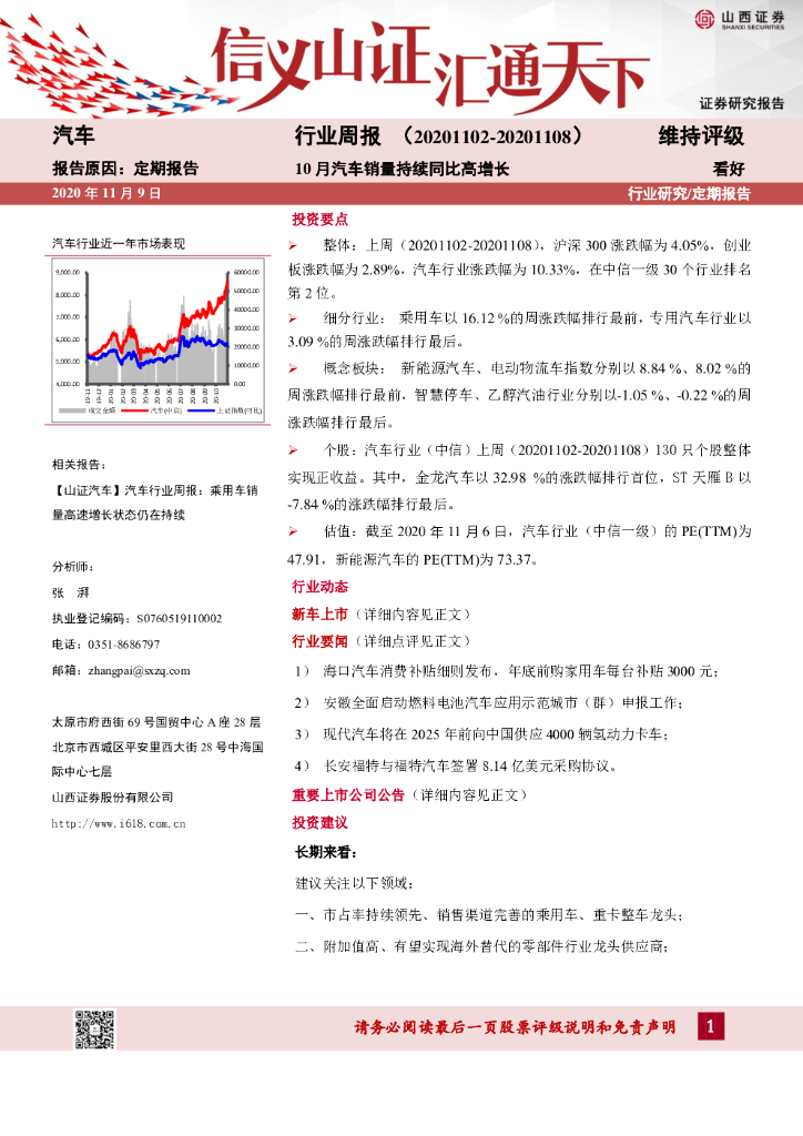 山西证券:汽车行业周报:10月汽车销量持续同比高增长.pdf