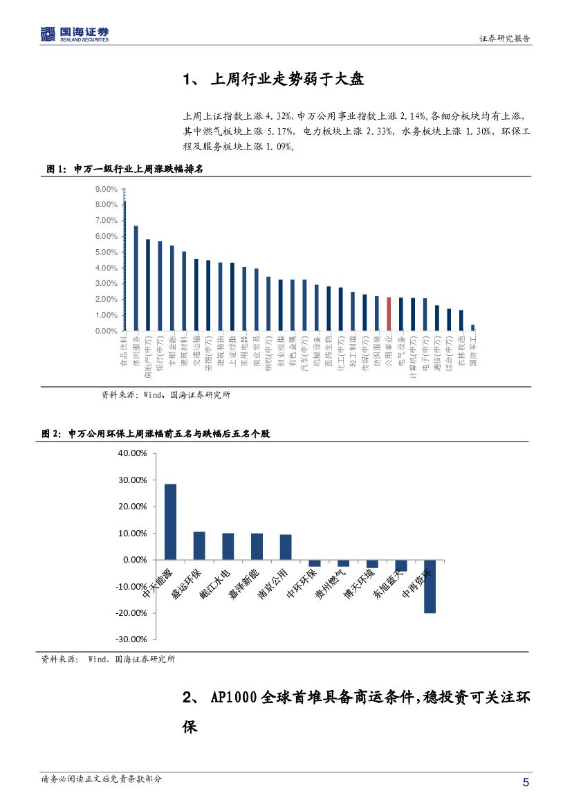 国海证券:环保及公用事业行业周报:AP1000全球首堆具备商运条件,稳投资可关注环保.pdf