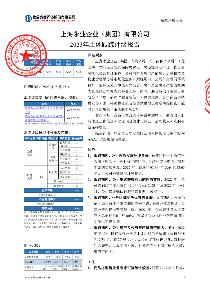 联合资信:上海永业企业(集团)有限公司2023年主体跟踪评级报告.pdf
