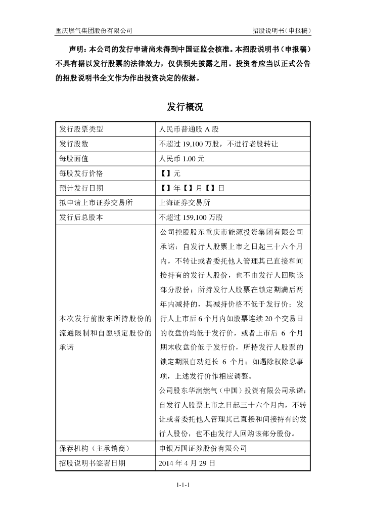 重庆燃气集团股份有限公司上交所主板IPO上市招股说明书.pdf