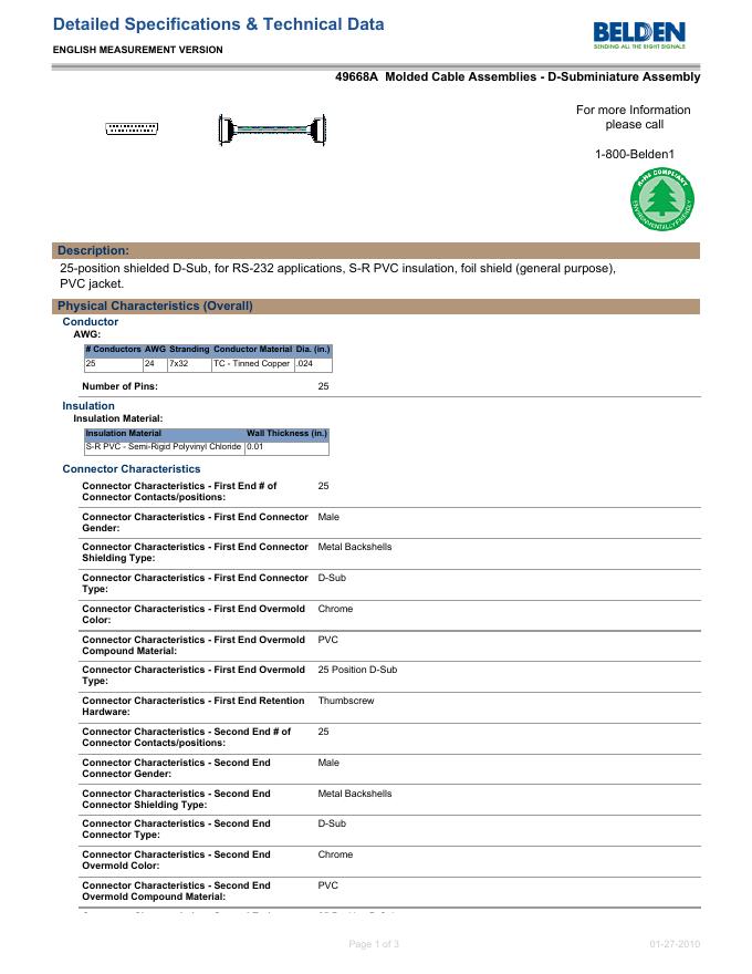 DELDEN 49668A Molded Cable Assemblies - D-Subminiature Assembly 数据手册.pdf