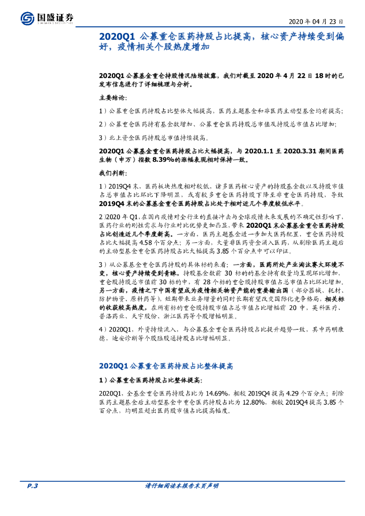 国盛证券:医药生物行业点评:2020Q1公募重仓医药持股占比提高,强化医药配置逻辑验证.pdf
