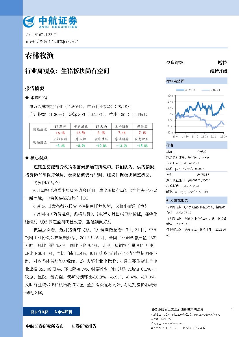 中航证券:农林牧渔行业周观点:生猪板块尚有空间.pdf