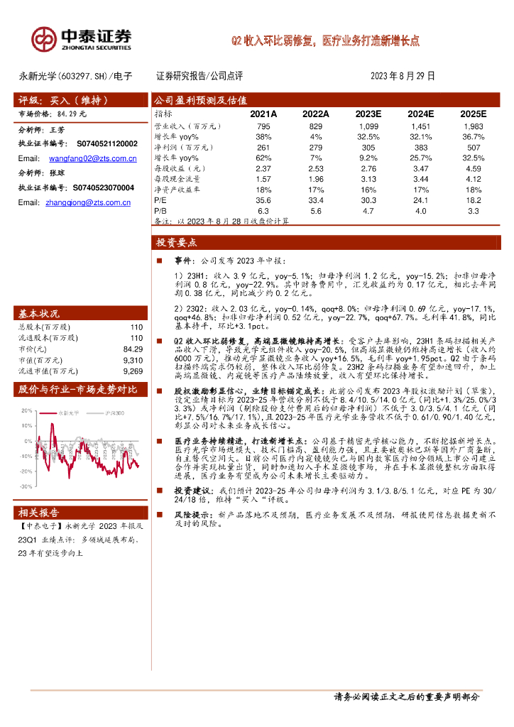 中泰证券:永新光学(603297)-Q2收入环比弱修复,医疗业务打造新增长点.pdf