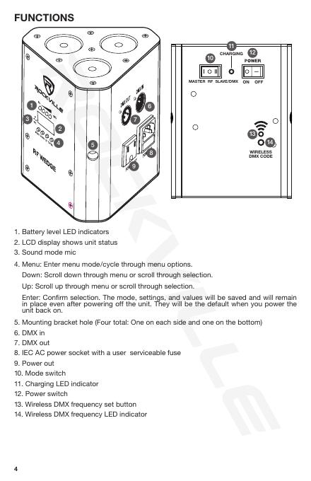 Rockville RF WEDGE 54W RGBWA+UV 充电电池和无线 DMX 平面灯.pdf