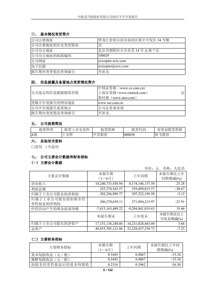 600038-中直股份:中航直升机股份有限公司2025年半年度报告.pdf