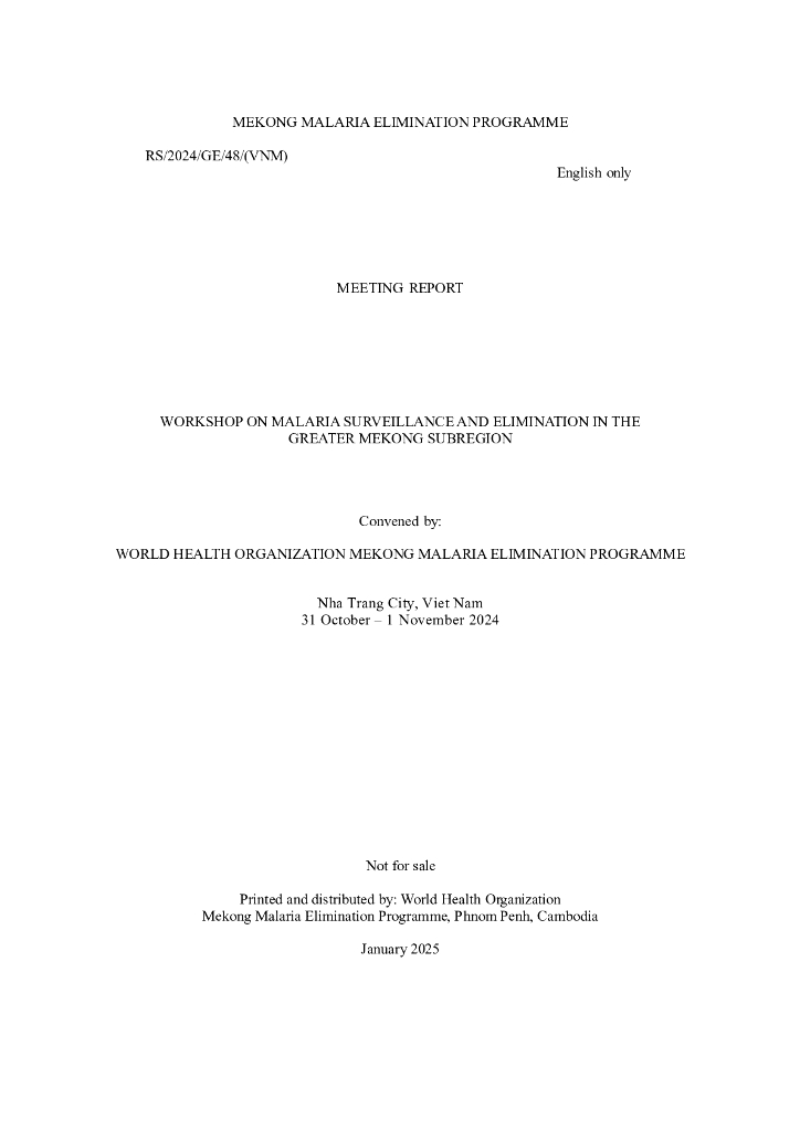 WHO世界卫生组织:2024年越南NHA Trang City的大湄公河区域的疟疾监视和消除研讨会议报告(英文版).pdf