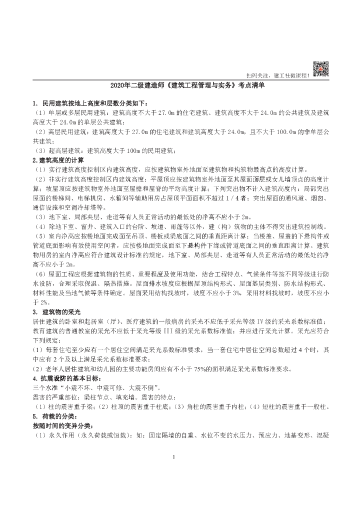 2020二建建筑考前押题班考点清单.pdf
