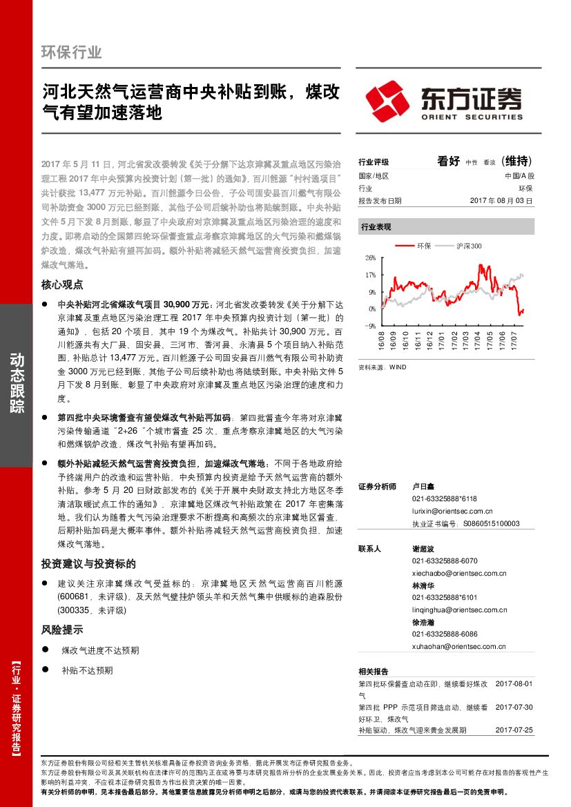 东方证券:环保行业:河北天然气运营商中央补贴到账,煤改气有望加速落地.pdf