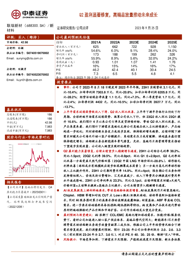 中泰证券:联瑞新材(688300)-Q2盈利显著修复,高端品放量推动未来成长.pdf