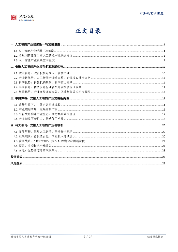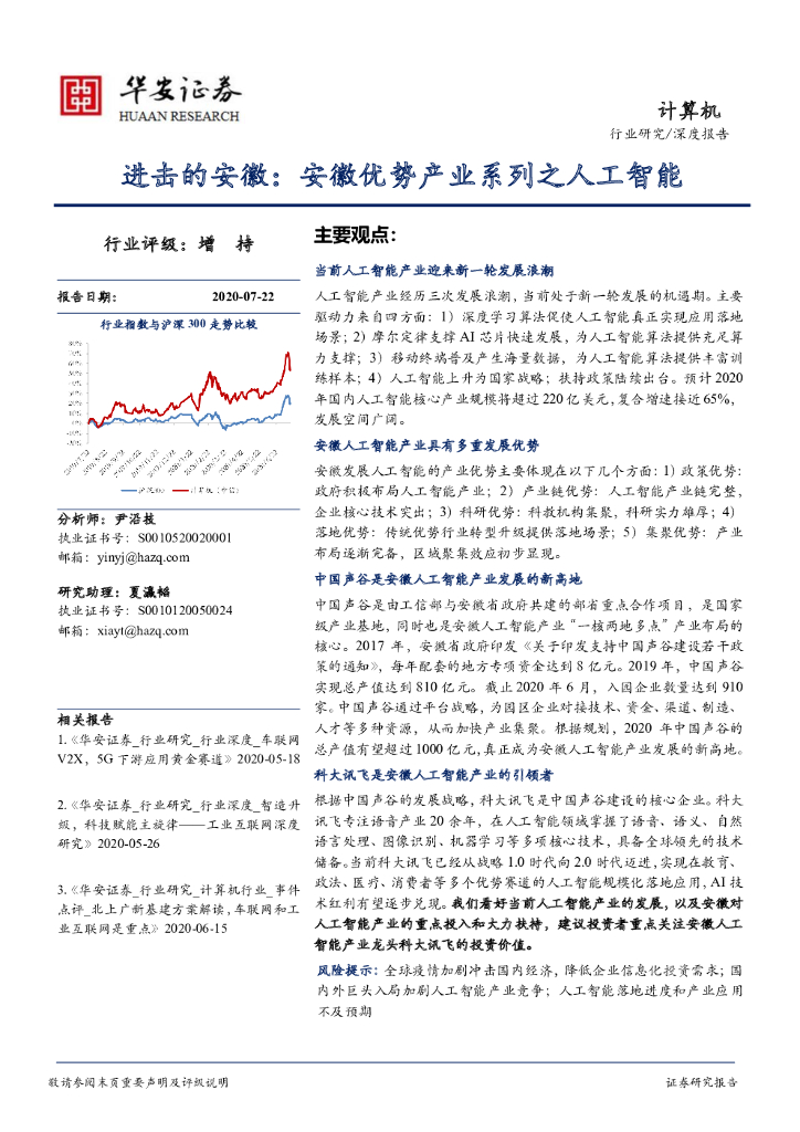华安证券:计算机:进击的安徽:安徽优势产业系列之人工智能.pdf