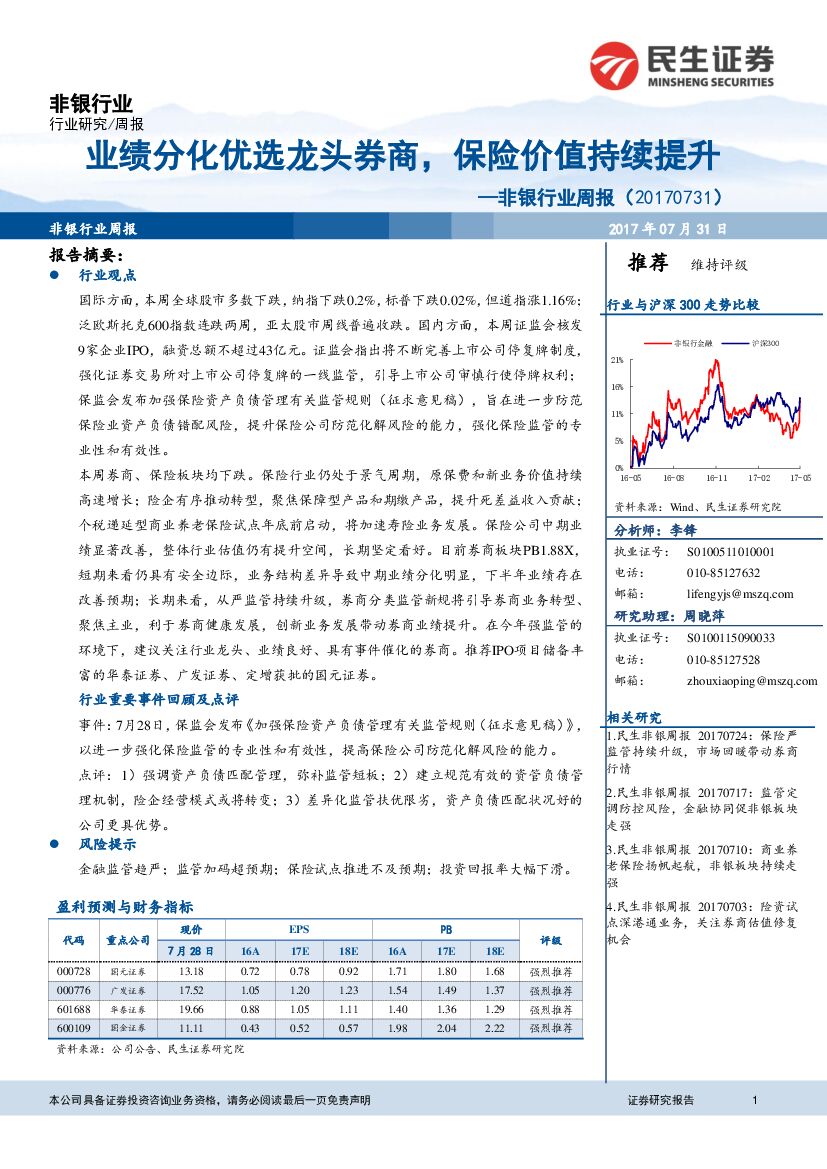 民生证券:非银行业周报:业绩分化优选龙头券商,保险价值持续提升.pdf