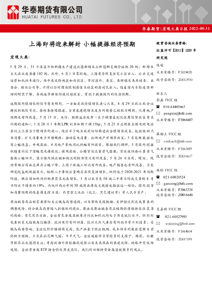 华泰期货:宏观大类日报:上海即将迎来解封 小幅提振经济预期.pdf