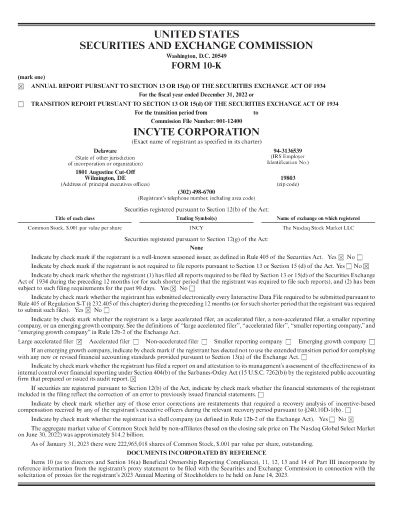 Incyte Corporation(INCY)2022财年年度报告(英文版).pdf