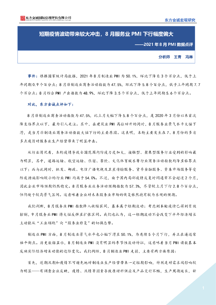 东方金诚:短期疫情波动带来较大冲击,8月服务业pmi下行幅度偏大-8月pmi数据点评(2021.08.31)(2).pdf