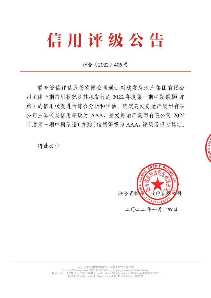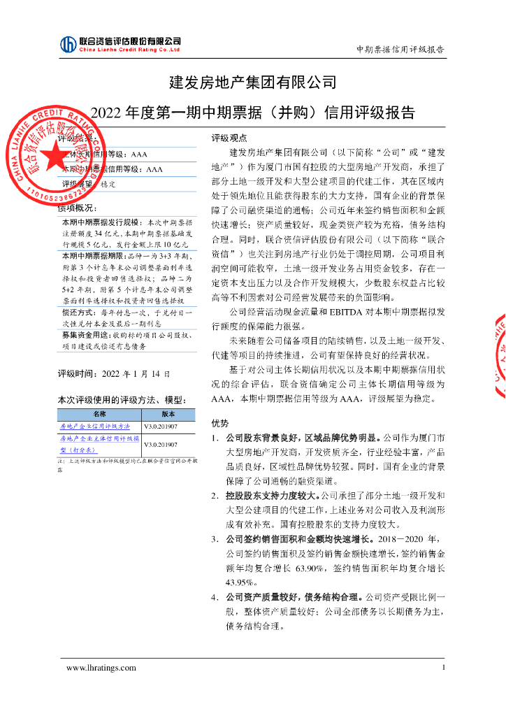联合资信:建发房地产集团有限公司2022年度第一期中期票据(并购)信用评级报告.pdf