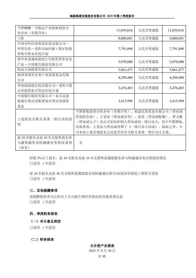 603162-海通发展:福建海通发展股份有限公司2025年第三季度报告.pdf