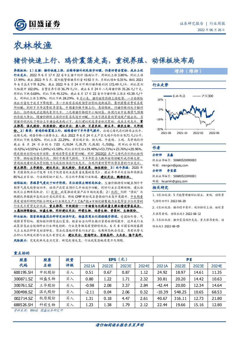 国盛证券:农林牧渔行业周报:猪价快速上行、鸡价震荡走高,重视养殖、动保板块布局.pdf