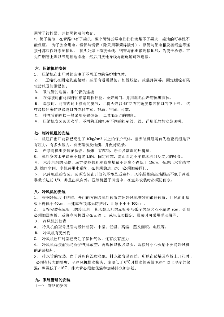 冷库的安装以及维修施工方案.doc