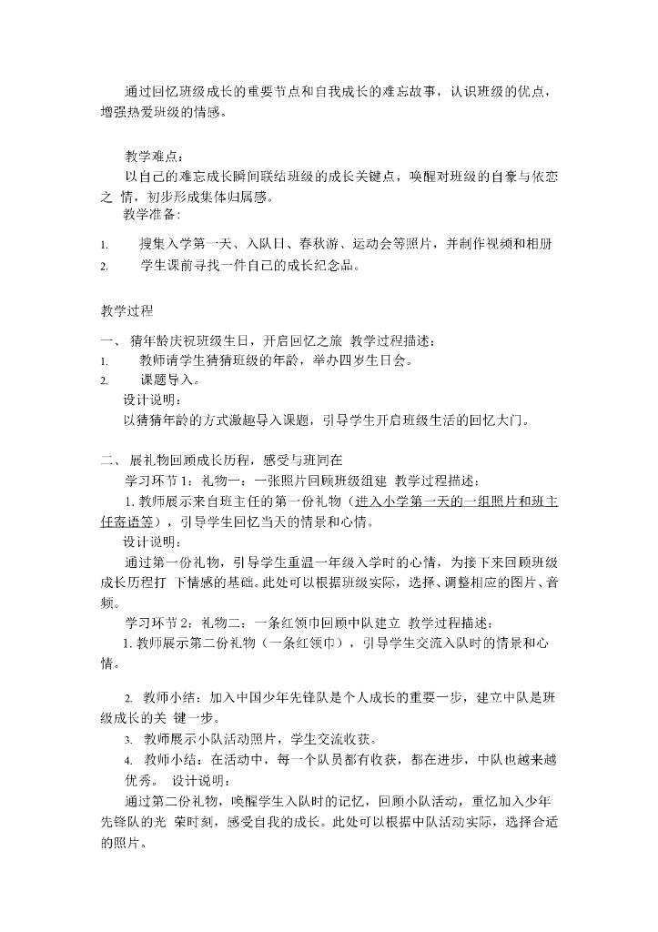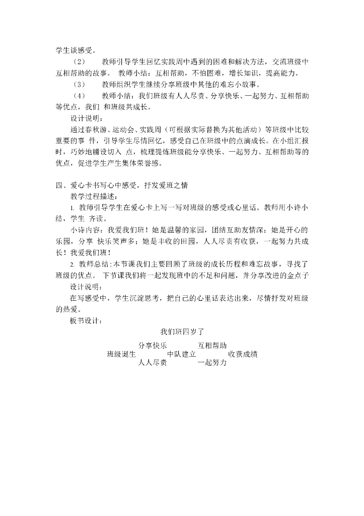 2021四年级上册 人教版小学道德与法治1 我们班四岁了 第1课时 人教(新版).doc