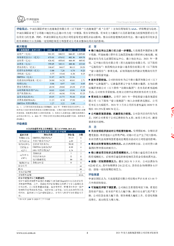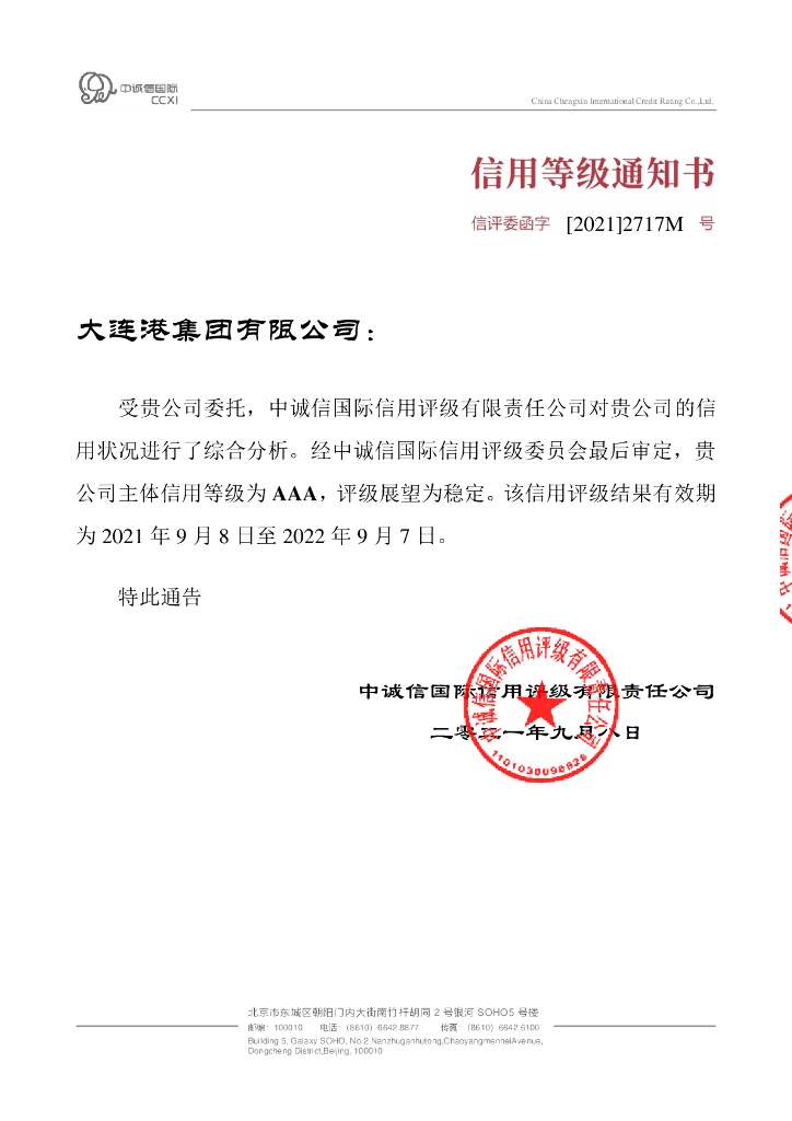 中诚信:2021年度大连港集团有限公司信用评级报告.pdf