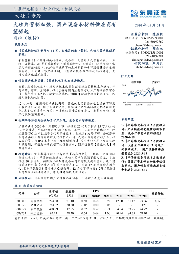 东吴证券:大硅片专题:大硅片管制加强,国产设备和材料供应商有望崛起.pdf