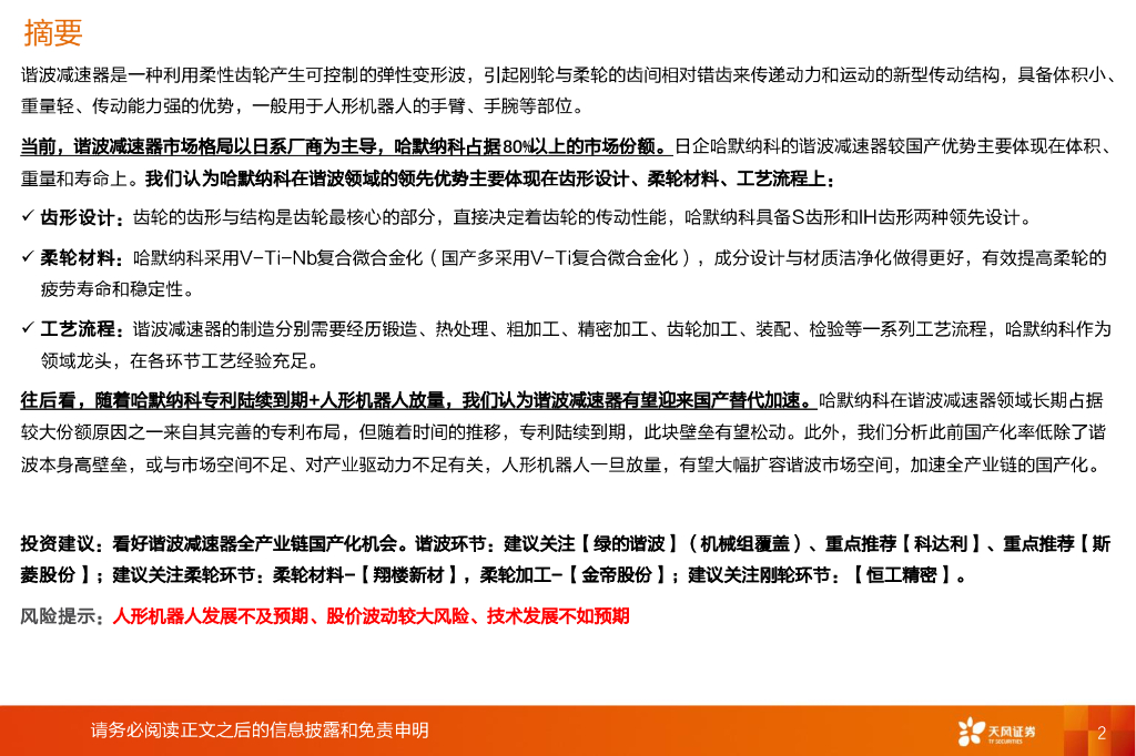 天风证券:电力设备行业深度研究:谐波减速器:人形东风助力国产化进程.pdf