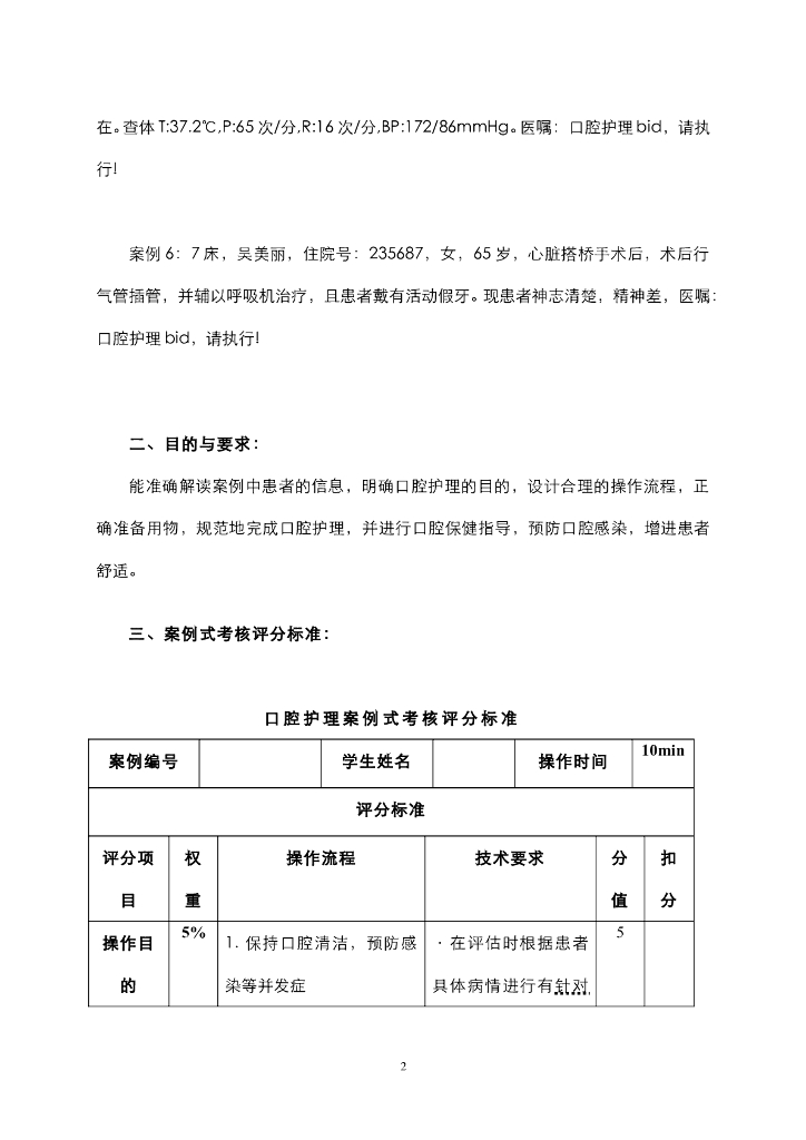 《护理技巧》口腔护理考核案例及评分标准.pdf