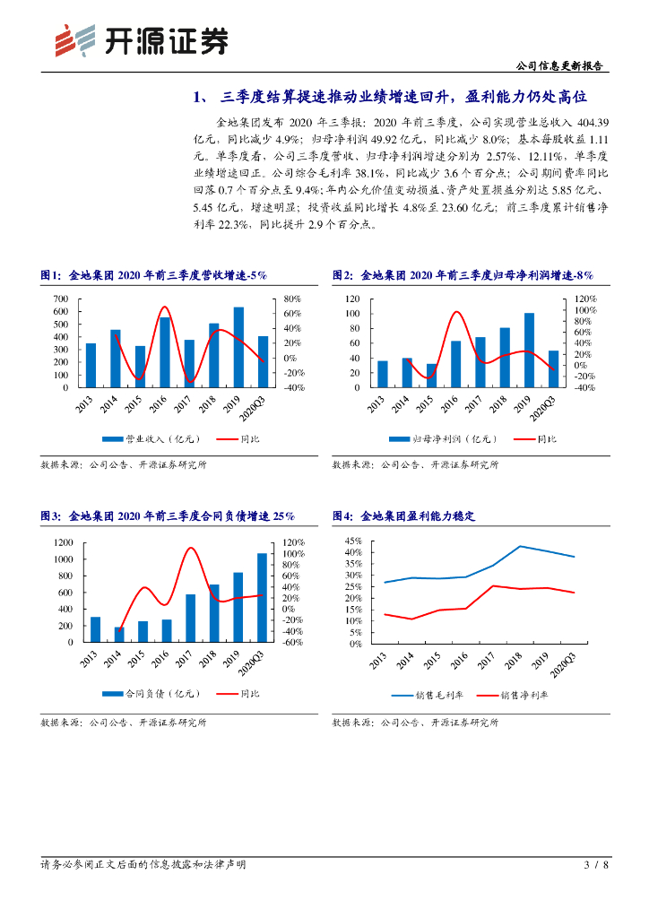 开源证券:金地集团(600383)-公司信息更新报告:单季度结算提速,销售持续增长,融资优势明显.pdf