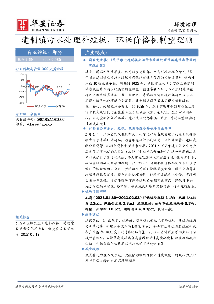 华安证券:环境治理行业周报:建制镇污水处理补短板,环保价格机制望理顺.pdf