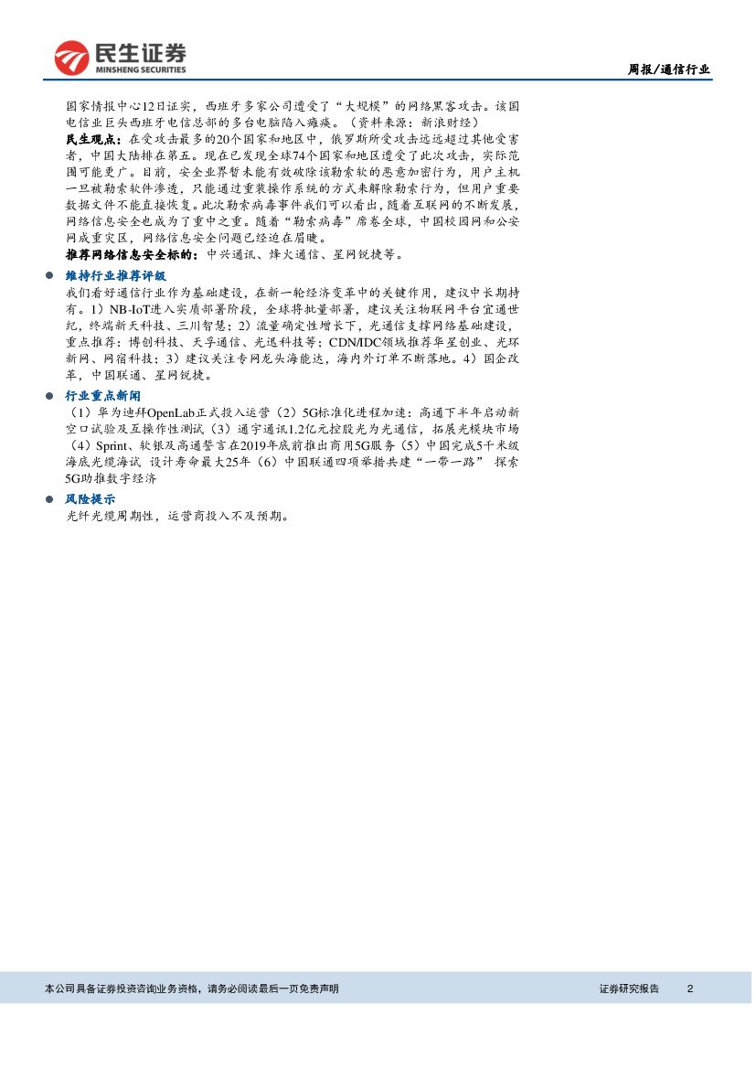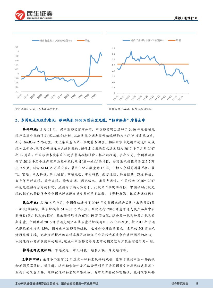 民生证券:通信行业周报:移动集采6760万芯公里光缆,“勒索病毒”席卷全球.pdf