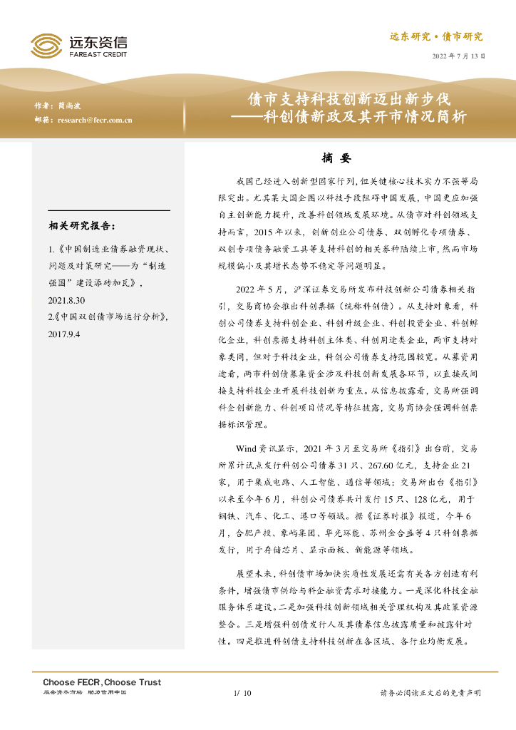 远东资信:债市支持科技创新迈出新步伐 ——科创债新政及其开市情况简析.pdf