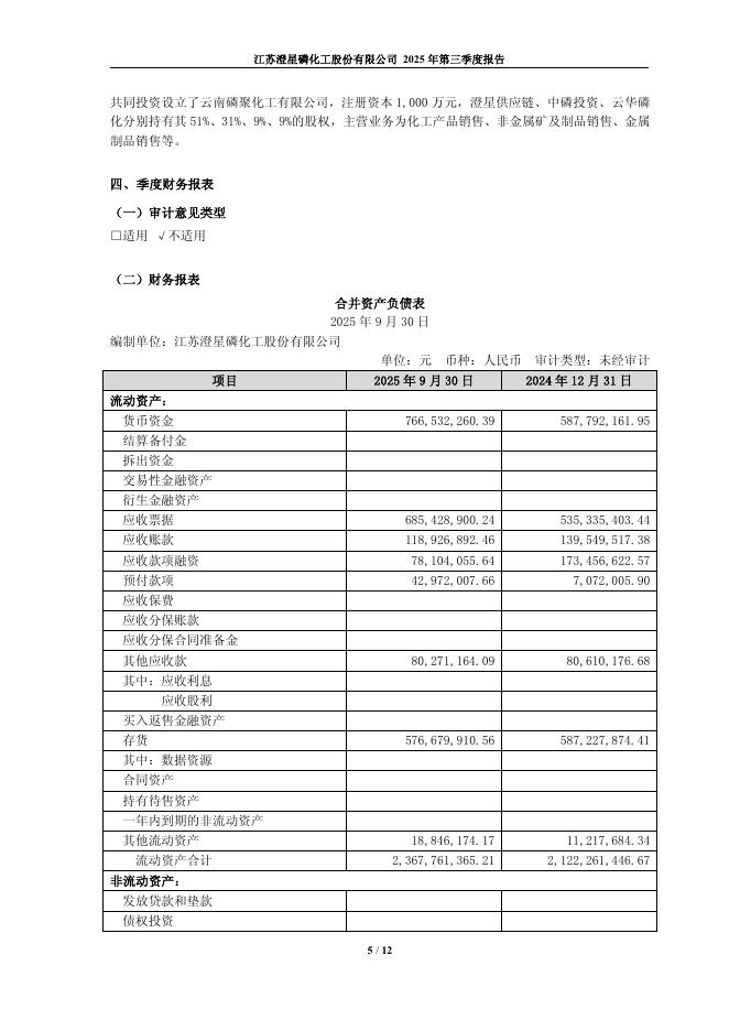 600078-澄星股份:江苏澄星磷化工股份有限公司2025年第三季度报告.pdf
