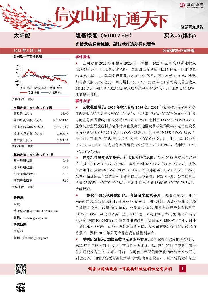 山西证券:隆基绿能(601012)-光伏龙头经营稳健,新技术打造差异化竞争.pdf