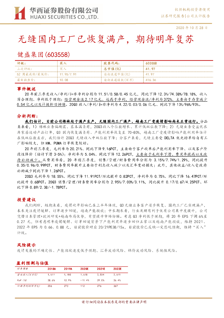 华西证券:健盛集团(603558)-无缝国内工厂已恢复满产,期待明年复苏.pdf
