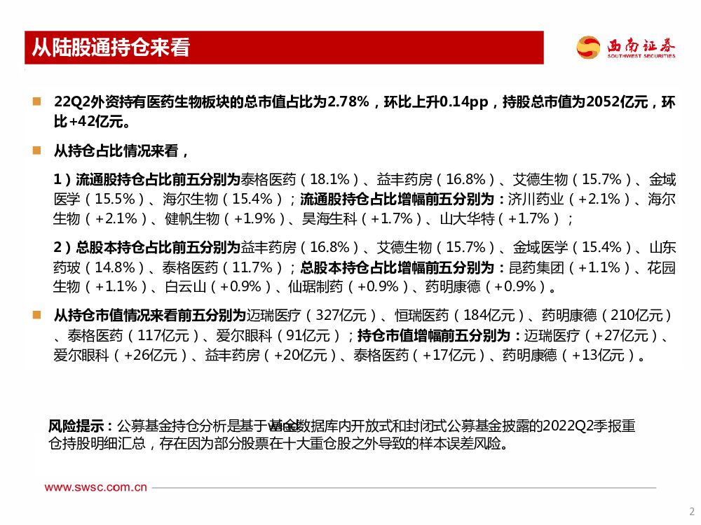 西南证券:医药2022Q2持仓分析:医药细分板块持仓结构性分化.pdf