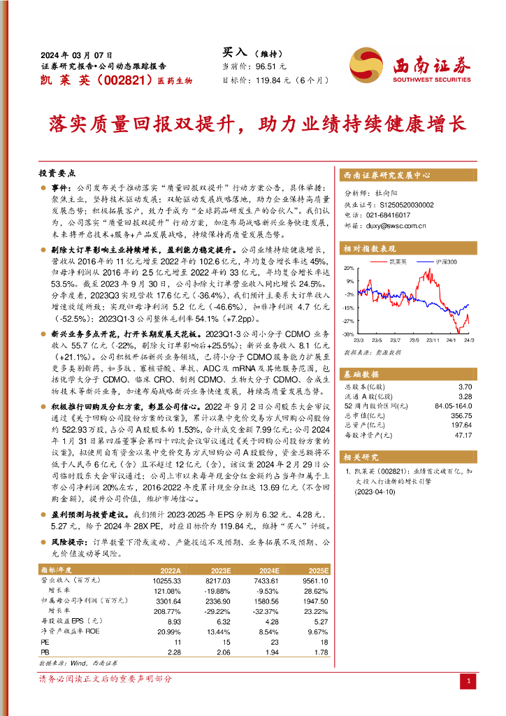 西南证券:凯莱英(002821)-落实质量回报双提升,助力业绩持续健康增长.pdf